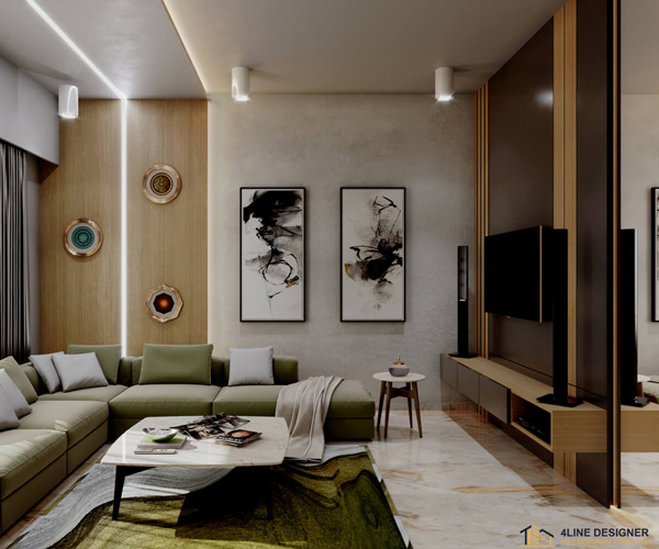 For living rooms, it is essential to properly manage everything like seating, lighting, table, shelves, window, and walls. We at 4Line Designer with our eminent promise to our clients to dispatch the proficient services of designing the interior of your living area as per your choice and requirement and surely in your considered budget.